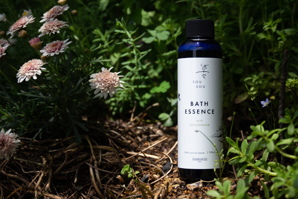 耕作放棄地を畑に再生し生まれた野草の活用。無農薬で栽培されたセイタカアワダチソウ(Solidago altissima L.)エキスを使ったバスソルト。生命力豊かなこの植物は、肌に潤いを与えます。入浴後も温かさが続くため、半身浴や美肌ケアに最適です。
